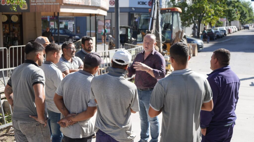 El intendente de Villa María, Eduardo Accastello, supervisó obras sobre calle Corrientes, entre 9 de Julio y San Martín, donde se esta llevando adelante una rectificación del sistema de desagües con el consecuente adoquinado de la carpeta superior.