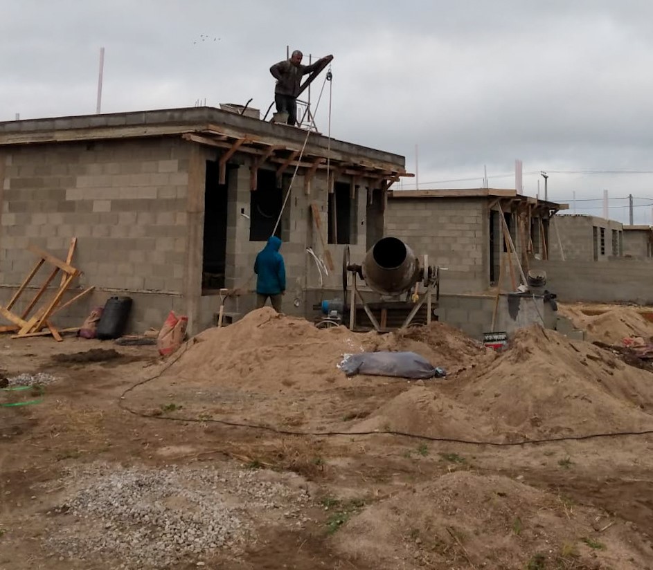 Plan Casa: Se completaron ocho viviendas a la altura de techos, dos con revoque grueso. Todas están listas para armar las losas. Cuatro viviendas están al 48%, dos al 75% y cuatro al 95% de avance.