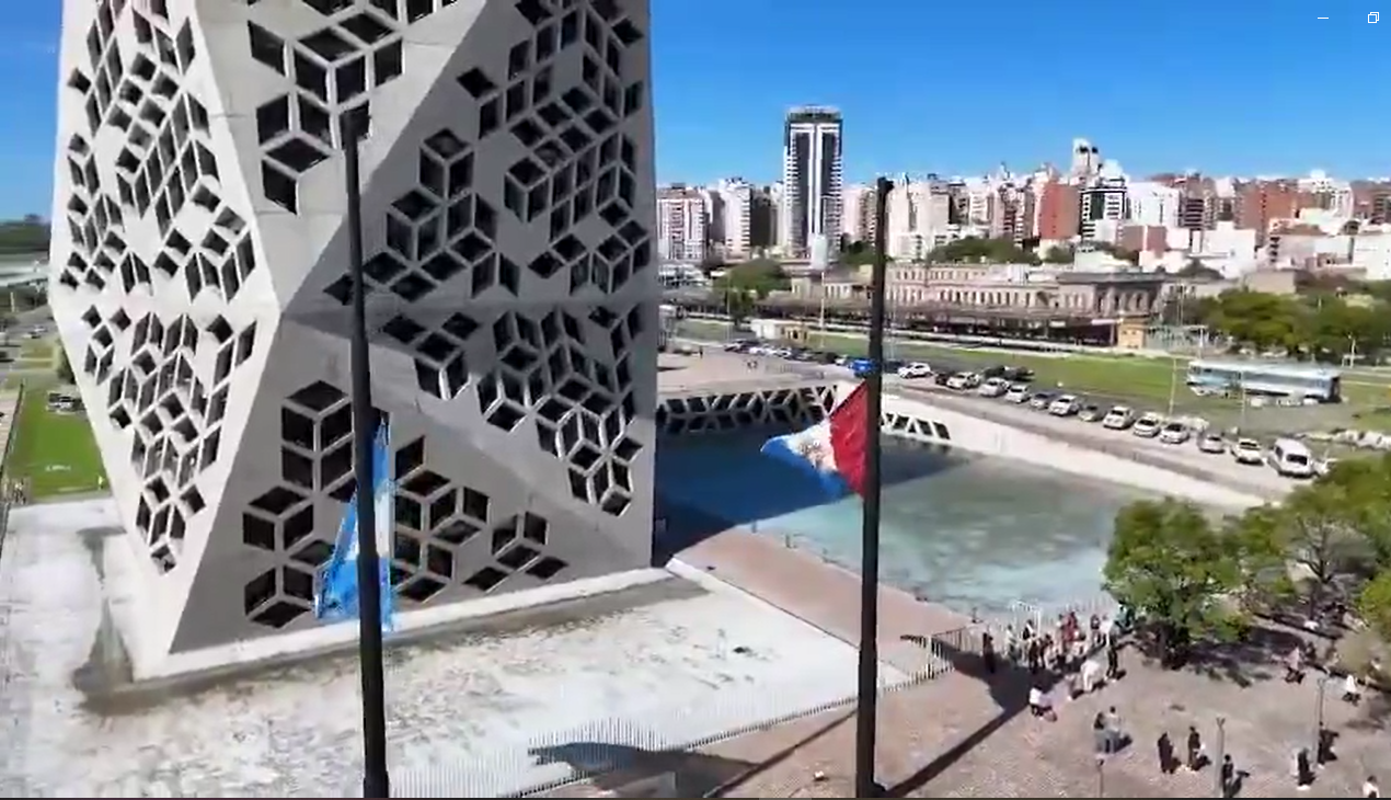 Las banderas del Centro Cívico del Bicentenario, en la Capital provincial, fueron izadas a media asta.