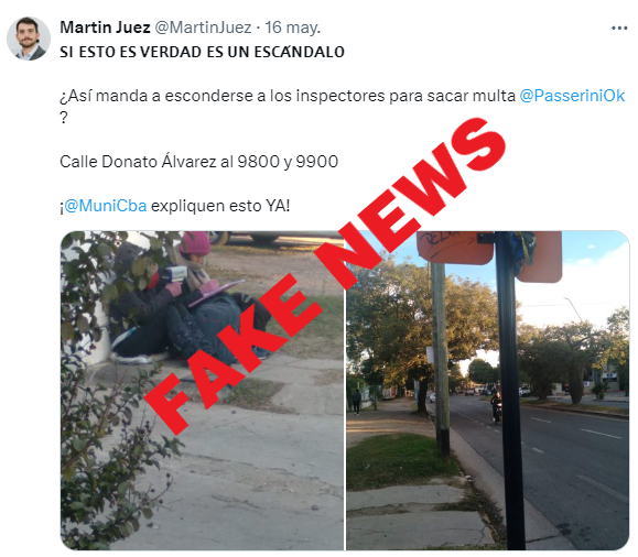 «Si esto es verdad es un escándalo» tituló su publicación el concejal del Frente Cívico, utilizando la misma tipografía característica de Política Córdoba Verdad en redes sociales; el texto agregaba: «¿Así manda a esconderse a los inspectores para sacar multa Passerini?».