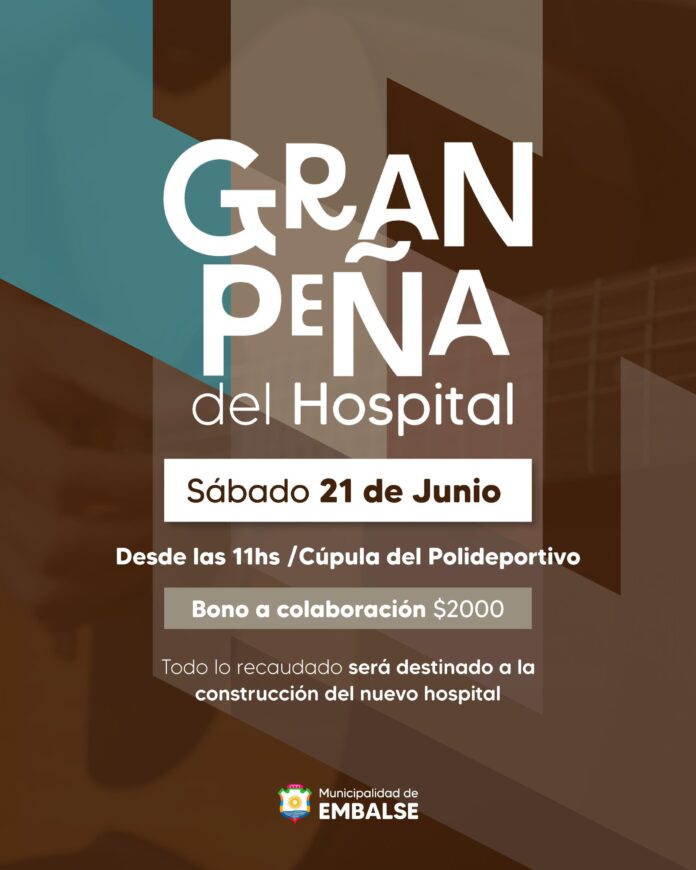 Este Sábado 21 de junio, desde las 11 de la mañana, en la cúpula del Polideportivo de la ciudad de Embalse, se desarrollará una jornada «bien nuestra», a puro folklore, baile, sorteos y comida rica. Todo lo recaudado será para la construcción del nuevo hospital de Embalse.