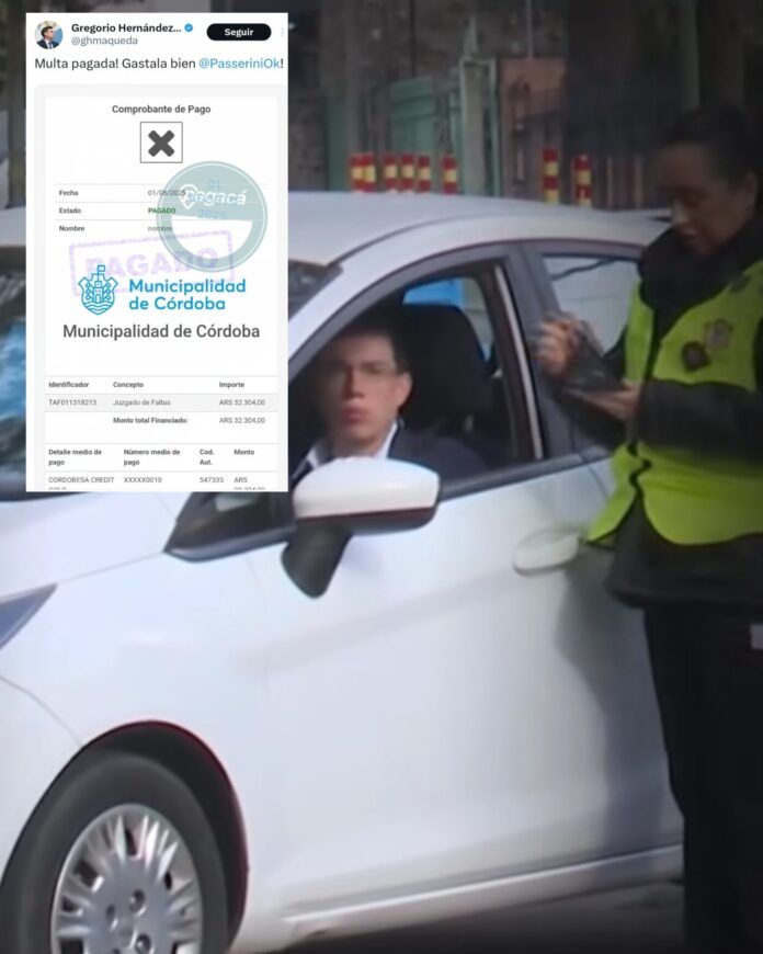 «Multa pagada. Gastala bien @PasseriniOk», posteó en la red social «X» el neolibertario. Lo abonado por Hernandez Maqueda es poco más de 32 mil pesos y fue impuesto por el tribunal de faltas municipal.