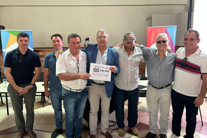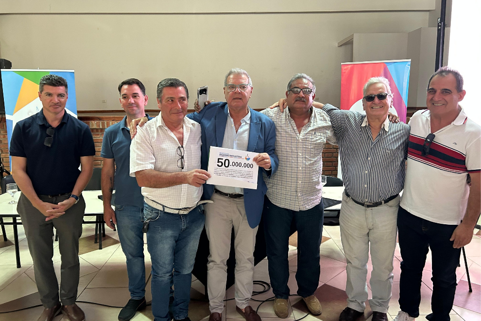En la Sociedad Rural del Oeste de Córdoba, el ministro de Bioagroindustria, Sergio Busso, entregó 600 millones de pesos a los 12 camineros de la Regional 2 para reequipamiento de maquinaria, recibiendo cada uno 50 millones de pesos.