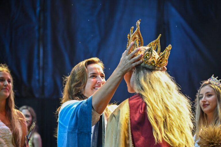 Asimismo, ante una multitud la vicegobernadora presenció, ya en la madrugada del lunes, la elección de la Reina Nacional del Trigo 2026-2027 y coronó a la flamante soberana en el escenario Don Ángel Mastrocola.