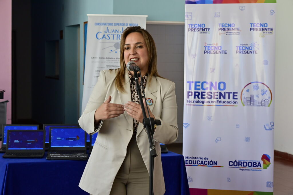 La vicegobernadora Myrian Prunotto materializó una importante apuesta en la formación de profesores integrando tecnologías digitales con la entrega de netbooks en la Escuela Normal Superior José Manuel Estrada en el marco de la presentación del programa “Tecno Presente en Línea”.