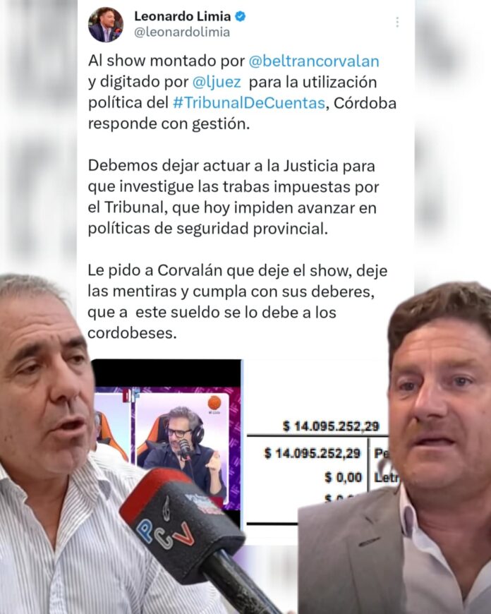 Leonardo Limia, legislador de Hacemos Unidos por Córdoba, le pidió a Beltrán Corvalan que deje el show y de mentirle a los cordobés. Acusó al tribuno de cuentas de hacer una utilización política de la repartición y estar orquestado por Luis Juez.