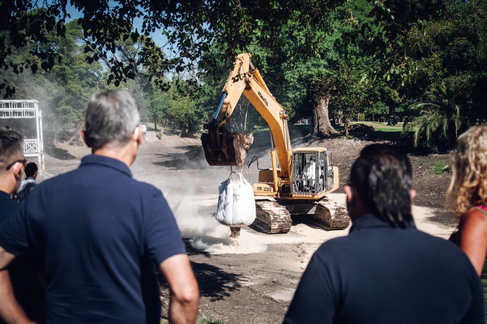 Además, se recuperó una antigua infraestructura abandonada y se concretaron otras obras para la instalación del riego por aspersión. El sistema utiliza el agua de desborde de la laguna que antes se perdía para el riego en el costado sur del Parque.