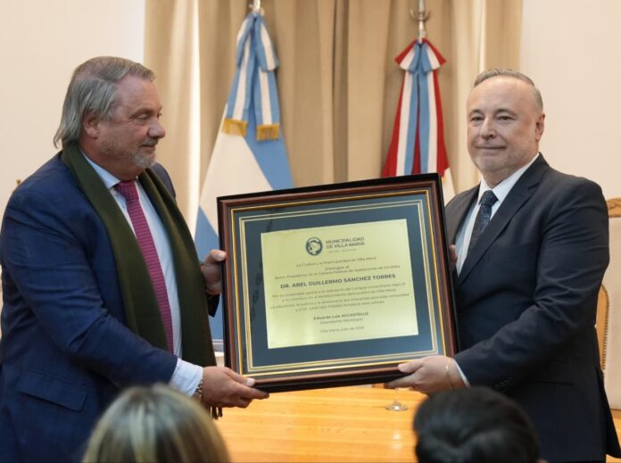 Durante la ceremonia realizada en el Salón Blanco del Palacio Municipal, se puso en valor la extensa labor del Dr. Sánchez Torres y, en la ocasión, el jefe municipal Eduardo Accastello destacó: “Usted doctor es el ejemplo de articular, de facilitar y de crear puentes, el amor es hijo de la libertad, y Villa María ama a los que nos abrazan y abraza a los que nos aman, así humanizamos el progreso de nuestra ciudad. Por eso, quiero decirle que usted representa una justicia que no se encierra, sino que escucha, a un Estado que no impone, sino que dialoga, a un poder que no se exhibe, sino que actúa con prudencia y coraje, a un ciudadano comprometido con el destino común más allá de su función”.